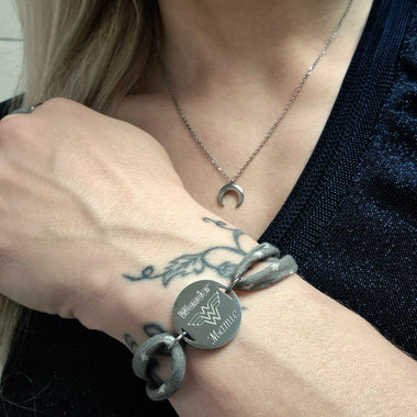 Bracelet Ruban Elastique Noir/Gris Family & Médaille Gravée