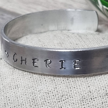 Jonc Maman Chérie Estampillé Main en Aluminium