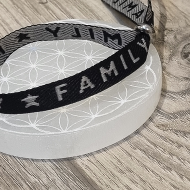 Bracelet Ruban Elastique Noir/Gris Family & Médaille Gravée