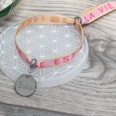 Bracelet Ruban Elastique La Vie est belle & Médaille Gravée