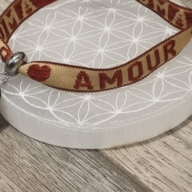 Bracelet Ruban Elastique Beige Amour & Médaille Gravée